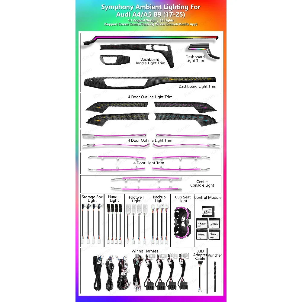 Upgrade Short-wheel Version Led Car Interior Ambient Light Decoration for Audi A4/A5 B9 2017-2024 Trim Accessories